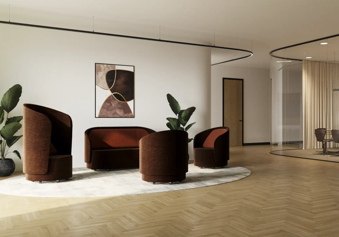 Circles is upholstered with fire-retardant CMHR foam and can be finished in high-quality fabric or leather, with a wide choice of colours. The range is a natural choice for offices, educational settings and public spaces where flexibility, function and aesthetics go hand in hand.