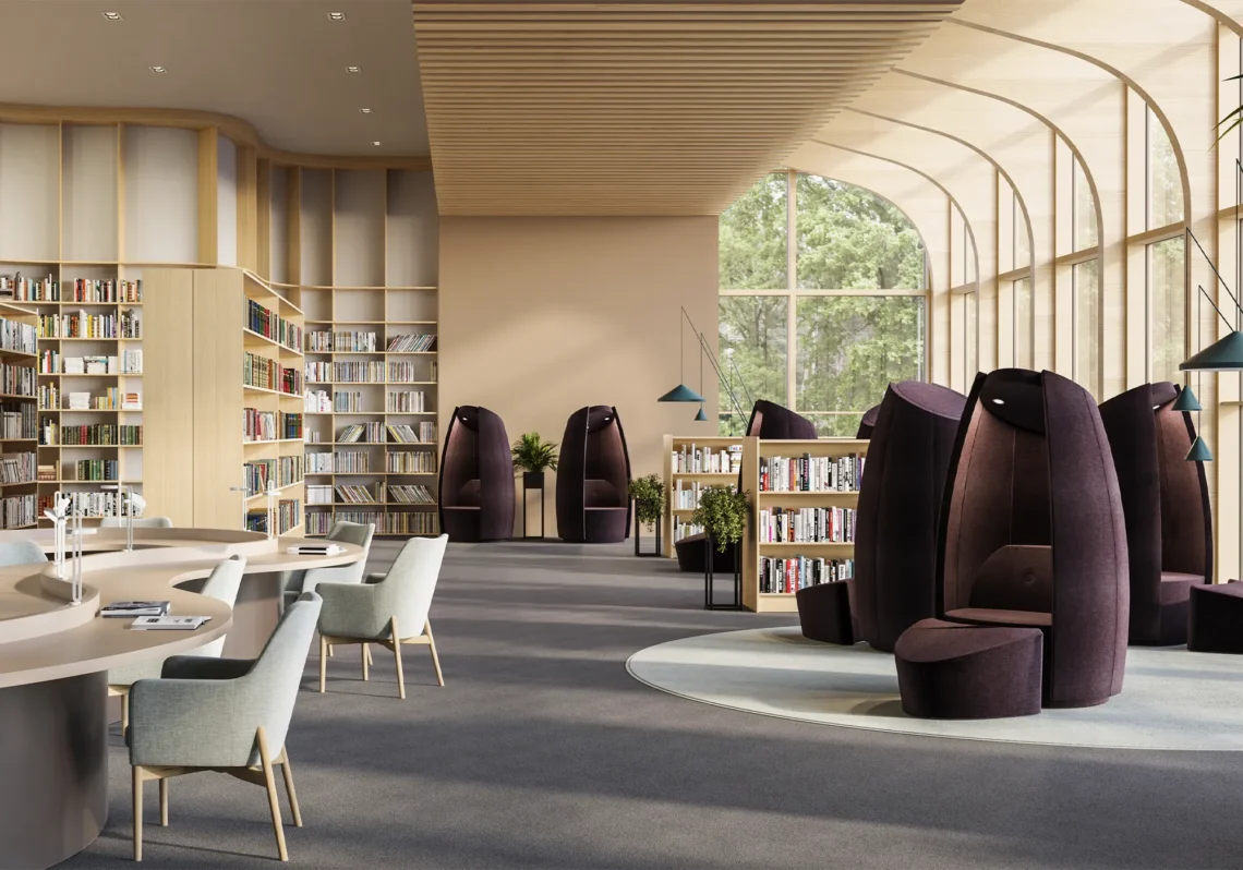 Cocoon is a sound-absorbing armchair designed for privacy, rest and concentration. Its enveloping shape with softly rounded lines creates a sheltered room within a room – ideal for schools, healthcare environments, hotels and activity-based offices.