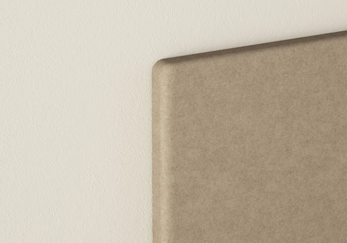 Limbus Noticeboard is a sound absorbing bulletin board that has got its character from Limbus Soft. The fabric is nailed to the body with high quality and precision. The large selection of standard fabrics provide many opportunities to create functional wall environments. The panels are easy to install using aluminum rails screwed to the wall.