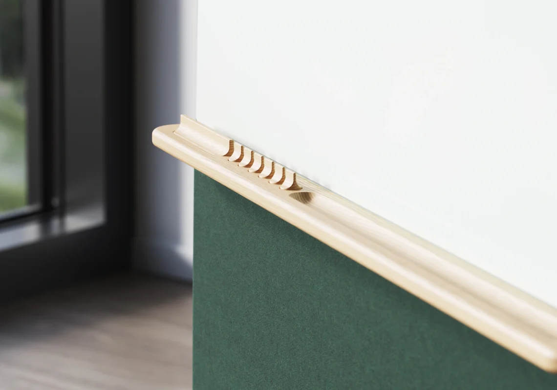 This mobile writing board is simple and soothing in its shape. The changing scales emote a sense of nature, like a series of trees in which one is certainly not exactly like the next. The greater the combination of different scaled units, the less one feels like he or she is in an office, but rather in the open, in nature. Siluett mobile write board allows for a focused work mode in that 1) it softens the ambient sound, and 2) it masks the visual disruptions of space to allow for a feeling of privacy both individually and within a small work group.