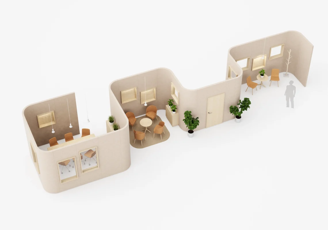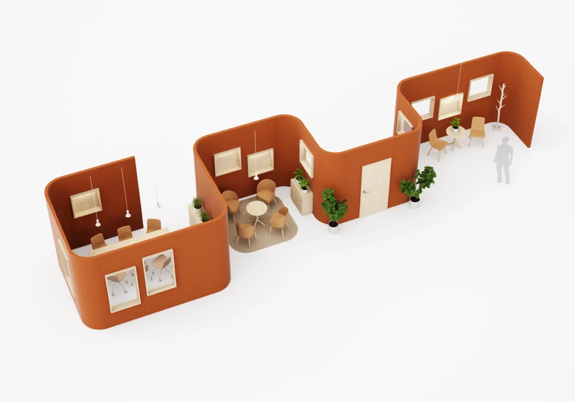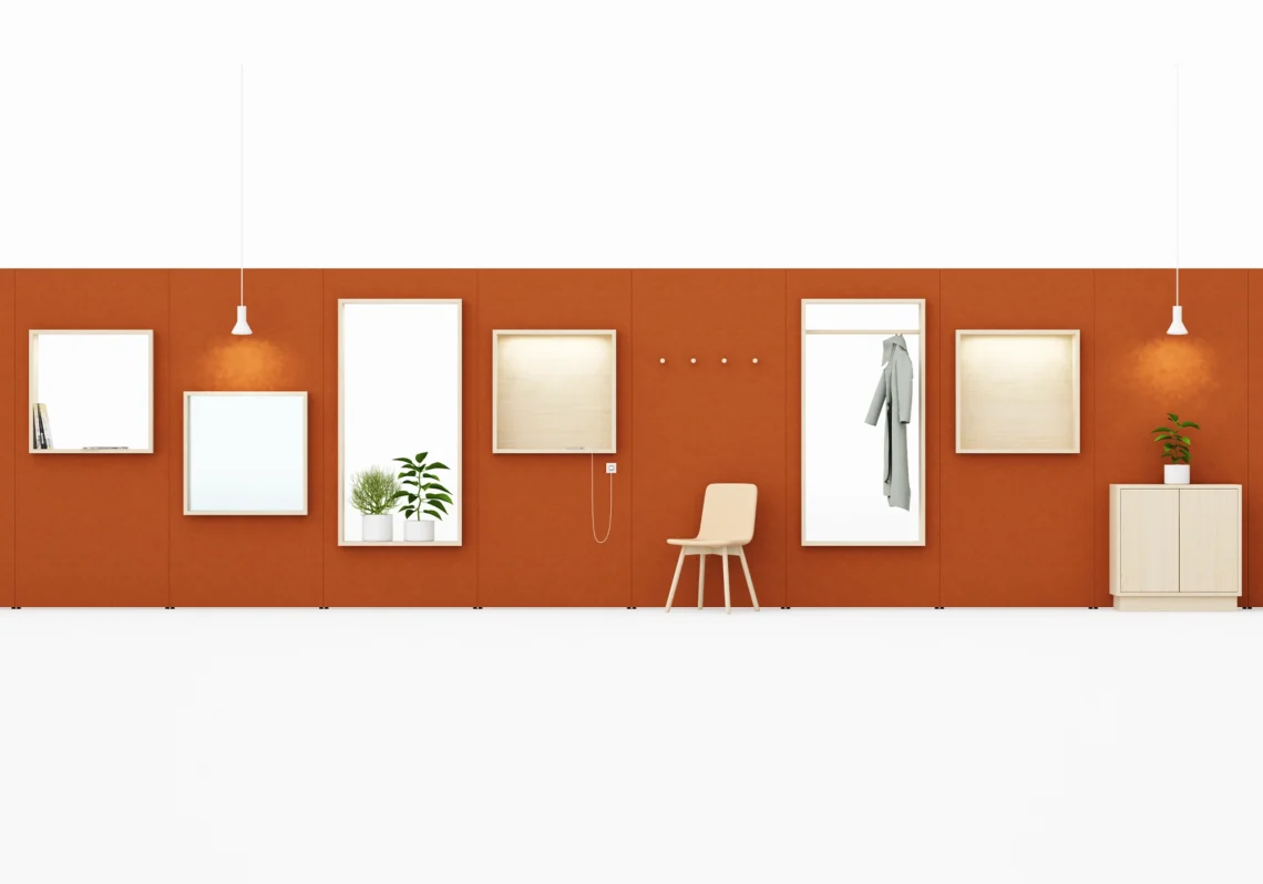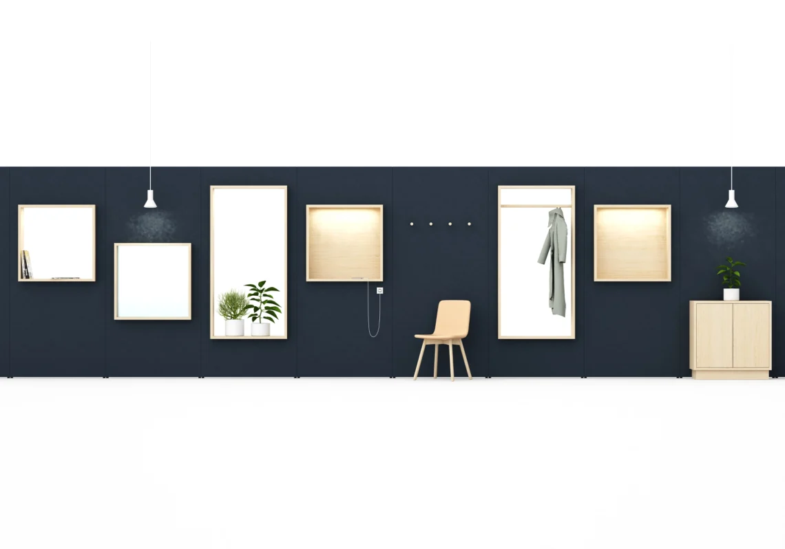 Buildup skiljeväggar är ett tygklätt väggsystem med samma höga kvalitet och ljudkomfort som Glimakra of Sweden är känt för. Systemet kan varieras i oändliga kombinationer med olika hörn, kopplingar, tillbehör och färger. Med Buildup kan tysta ljudlandskap skapas med öppna eller slutna rum, kreativa paviljonger eller fristående väggar. Väggarna kan förses med dörrar samt ljusnischer och fönster som kan placeras ordnat eller på ett mer lekfullt sätt om så önskas. Fönstren kan fås med klart eller frostat glas eller helt öppna där hyllan kan användas till förvaring eller exponering av föremål och växter.