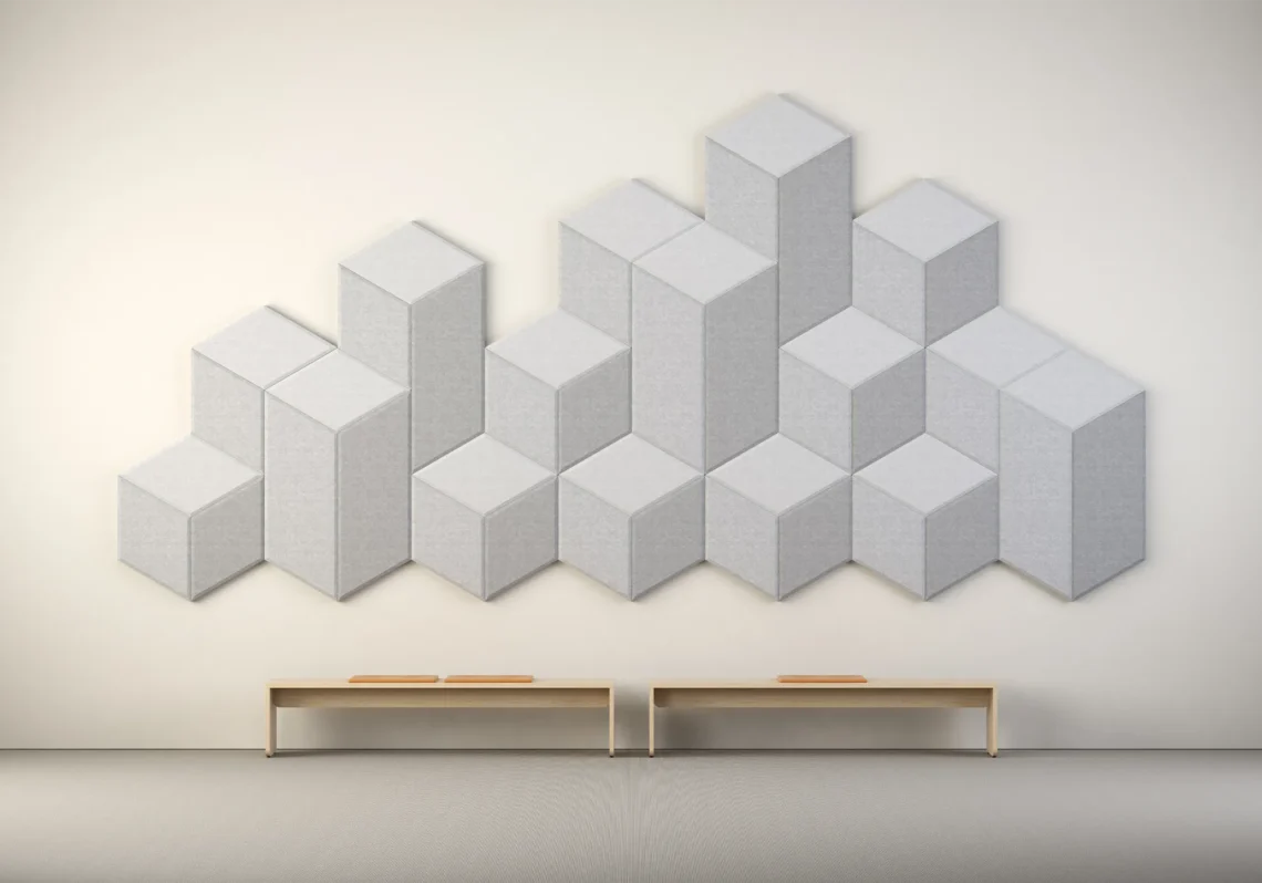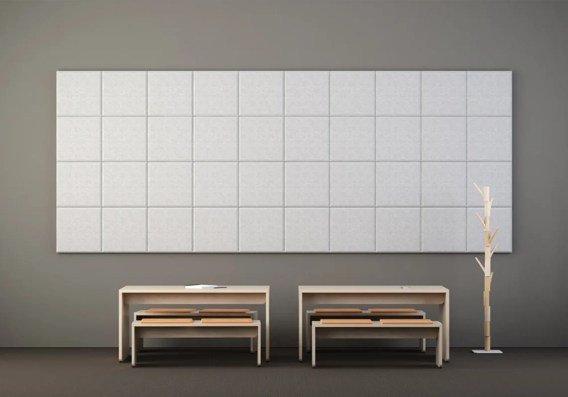 Quingenti väggabsorbenter. Namnet Quingenti kommer från latinets 500. 500 mm är gemensam nämnare för samtliga varianter. De relativt små panelerna med sin fasade kant på 10 x 10 mm ger Quingenti en egen prägel. Den gedigna stommen möbelspikas med hög kvalitet och precision. Med Quingenti kan man tillföra rummet mycket karaktär och absorptionsyta och skapa unika mönster med olika monteringsalternativ. Det stora urvalet av standardtyger ger nästan obegränsade möjligheter att bilda vackra och funktionella väggmiljöer. Panelerna är mycket enkla att montera med hjälp av monteringsknappar.